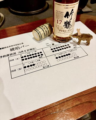 バー時間帯は 琥珀のエクスペリエンス 有料試飲会に参加出来ます。